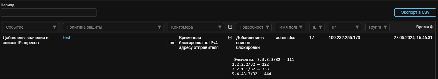 items=true, позволяющий логировать список занесенных IP-адресов в custom журнала событий