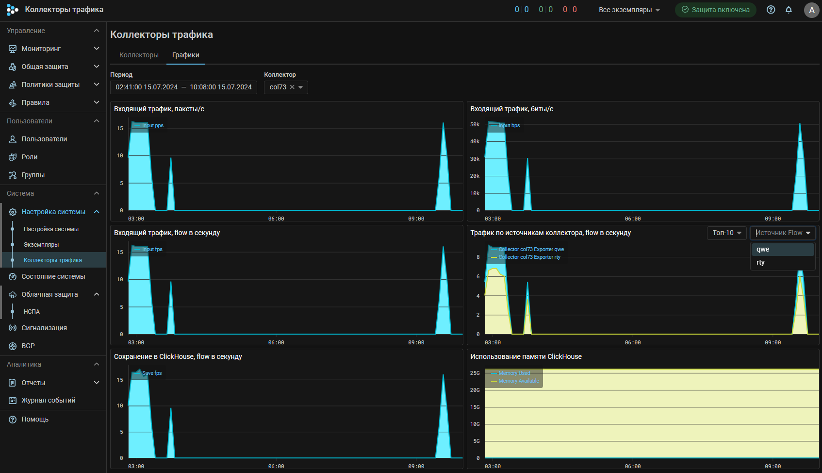 Collector. Настройки коллекторов трафика вынесены в отдельный пункт главного меню.
