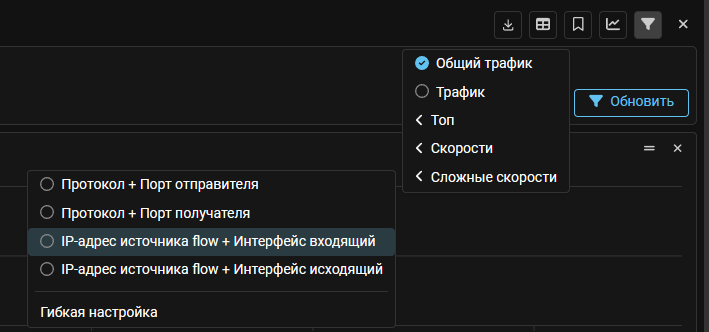 На вкладку «Дашборд» страницы «Анализ Flow» и на вкладку «Анализ Flow» в политику защиты добавлены сложные скорости: