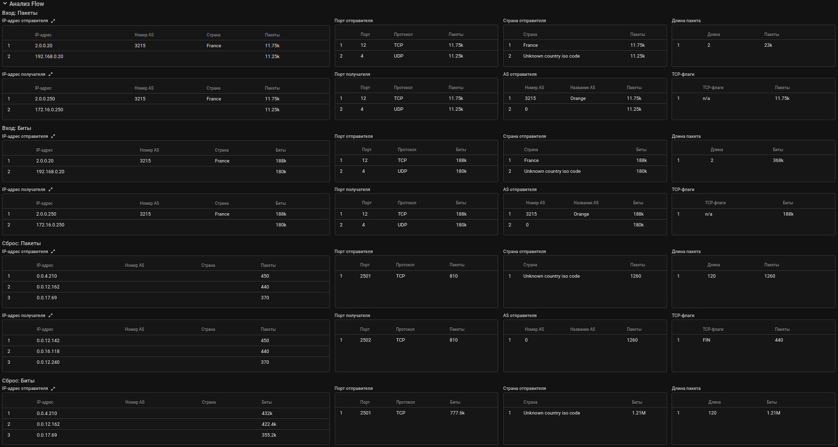 Теперь на вкладке «Дашборд» страницы «Анализ Flow» и на вкладке «Анализ Flow» в политике защиты по умолчанию отображается базовый набор виджетов.