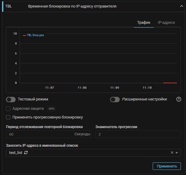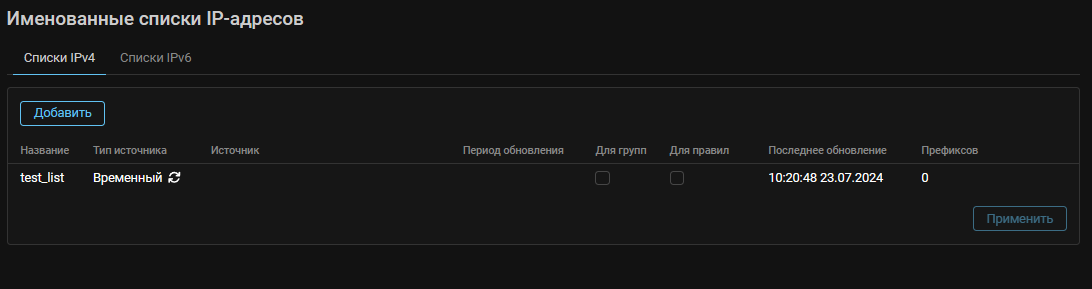 TBL. Добавлена поддержка добавления IP-адресов в именованный список с типом источника «Временный».