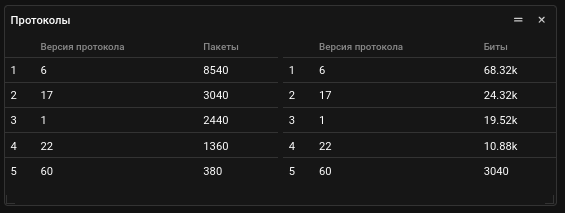 Collector. Добавлен топ по протоколам в Анализе Flow.