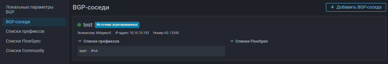 BGP-соседу добавлено свойство «Источник агрегированных списков».