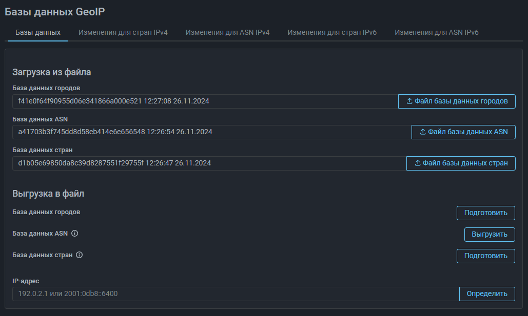 Теперь пользователь может скачивать базу данных GeoIP, в том числе с учетом внесенных изменений по принадлежности IP-адресов стране и ASN.