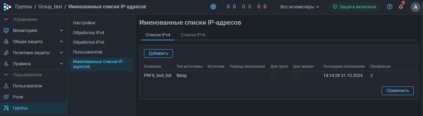 Теперь на странице «Группа» в пункте подменю «Именованные списки IP-адресов» групповые пользователи могут создавать именованные списки IP-адресов и самостоятельно управлять их содержимым.