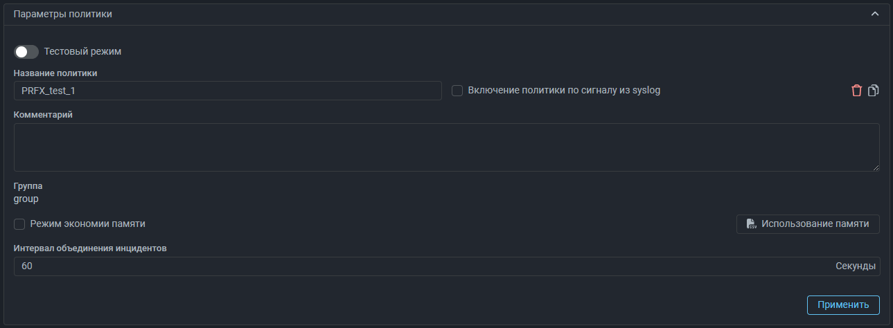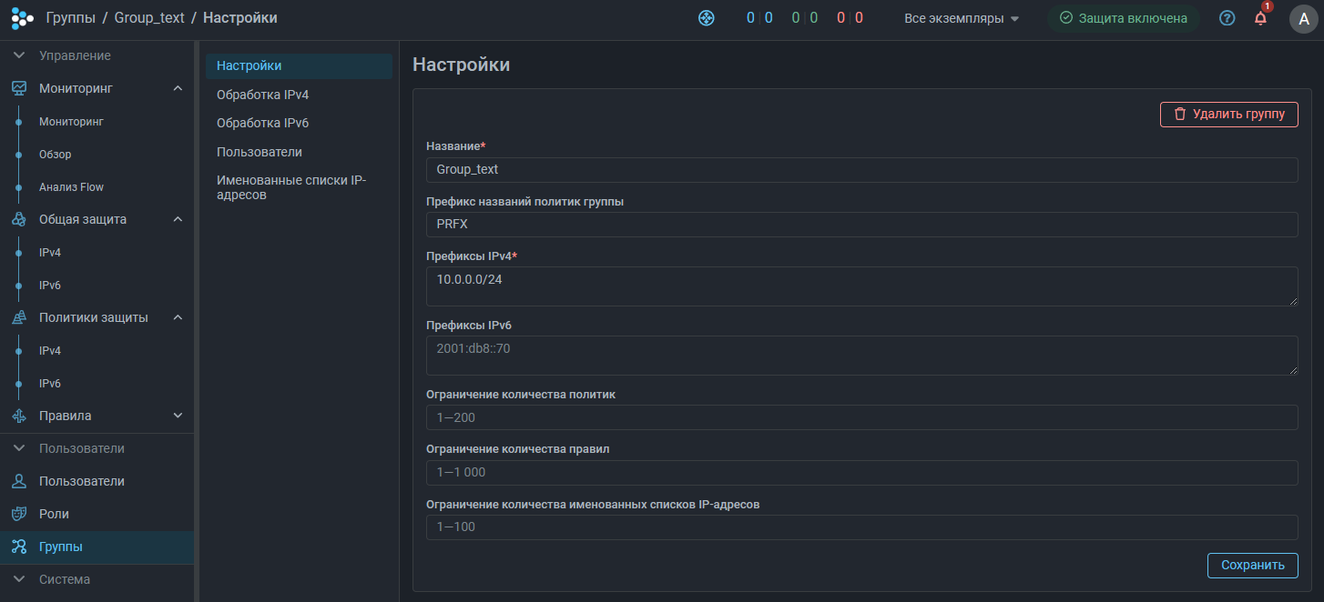 Теперь в настройках политики защиты отображается название группы, к которой относится данная политика.