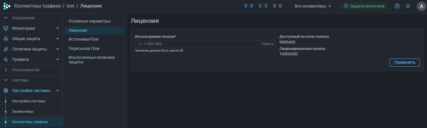 Начиная с версии v24.10 Collector требует указания лицензионного ключа и используемой полосы, а также наличия постоянной связности с сервером лицензирования.
