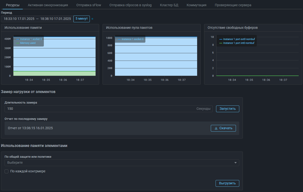 На вкладке «Ресурсы» страницы «Состояние системы» теперь можно запустить замер нагрузки, чтобы выяснить, сколько процессорного времени было затрачено на обработку пакетов различными элементами системы. Эта информация может быть полезна при диагностике.