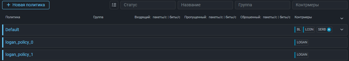 UX. Добавлена индикация работы Logan на странице списка политик.