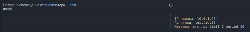 alert src.rps limit 100 period 200 for 2.2.2.2LOGAN. Добавлено журналирование причины срабатывания alert.