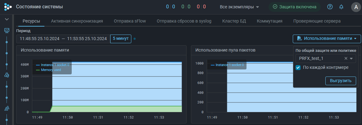 Теперь в настройках политики защиты можно выгрузить csv-файл с информацией о потреблении оперативной памяти.