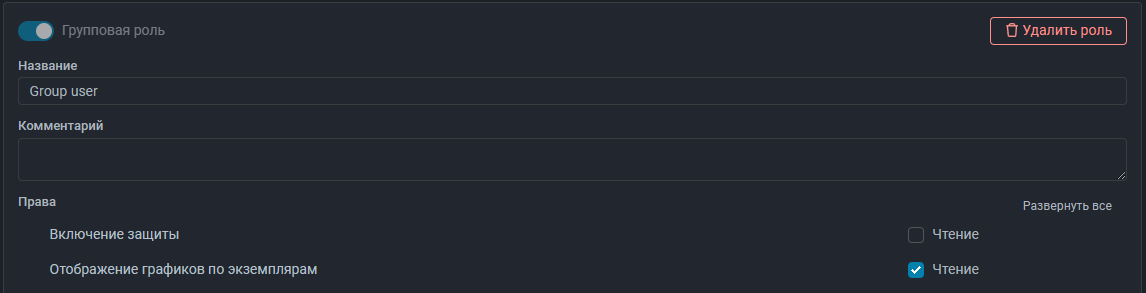 Права. Добавлено право на просмотр графиков по экземплярам для групповых пользователей.