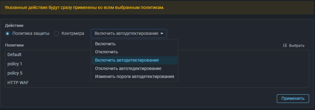 Policy. Добавлено действие удаления порогов автодетектирования для массовых изменений политик защиты.