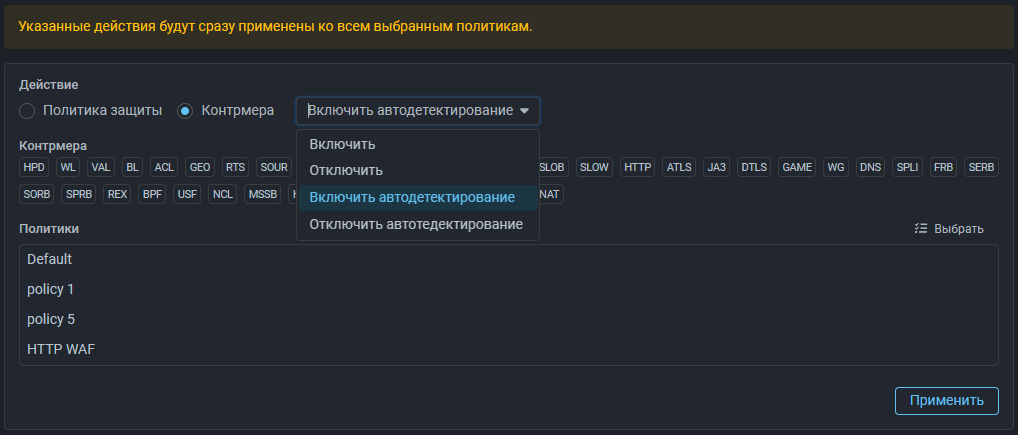 Policy. Добавлены новые действия для массовых изменений политик защиты.