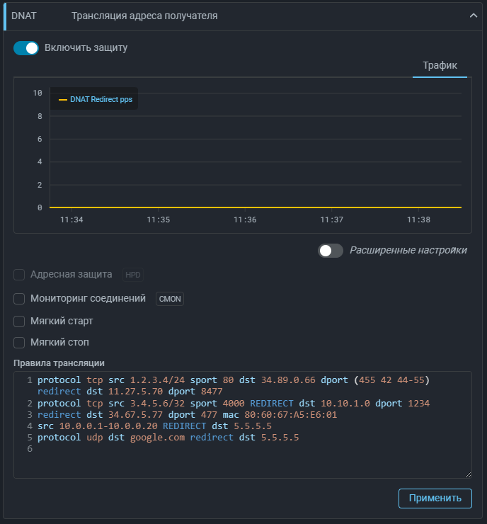 В версии v25.02 добавлено: функция DNAT, отправка тестового сброса по sFlow,
