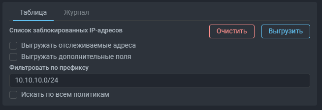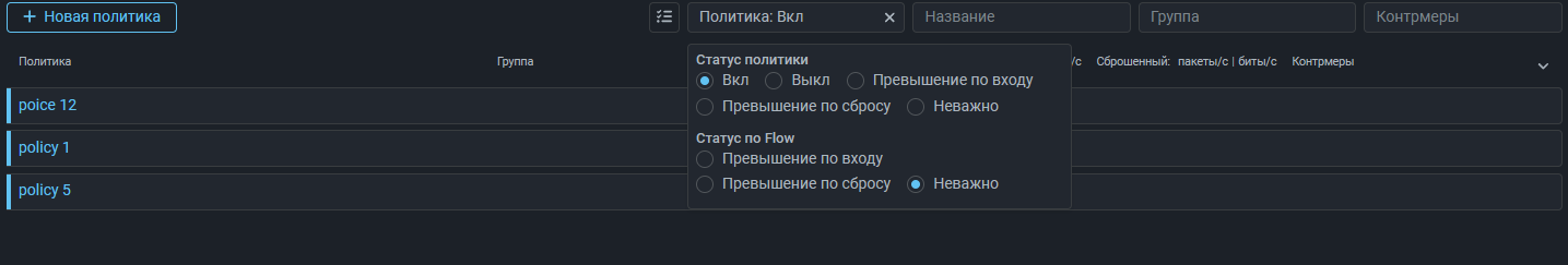Теперь на вкладке «Топ политик» страницы «Мониторинг» можно посмотреть топы по IPv4 и IPv6 трафику независимо. Отображение графиков управляется кнопками IPv4 и IPv6.