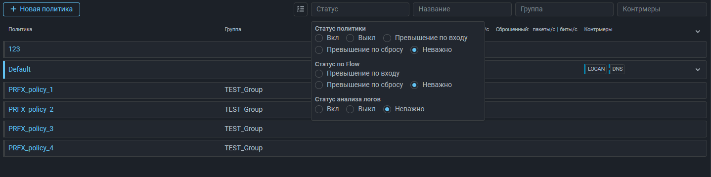 UX. Добавлена фильтрация по статусу Logan на странице списка политик.