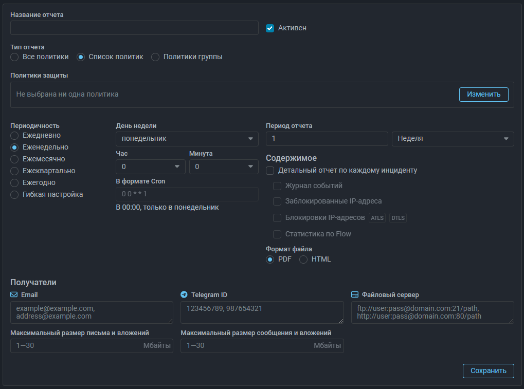 В экспортируемый отчет по инцидентам добавлена таблица значений среднего и максимального трафика, сброшенного за время инцидента каждой контрмерой.