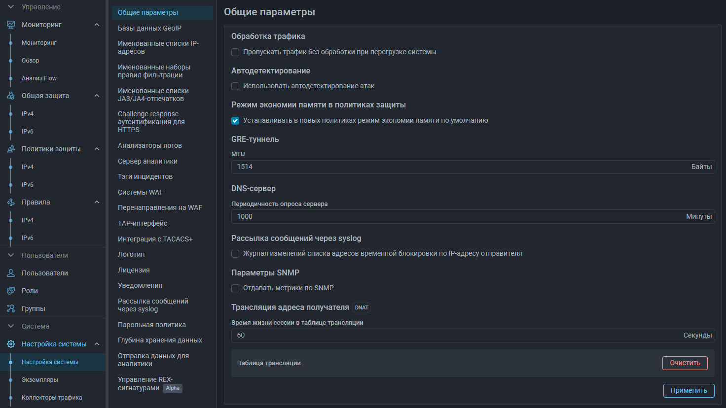 Изменена форма управления именованными списками IP-адресов, правил фильтрации и JA3/JA4-отпечатков.