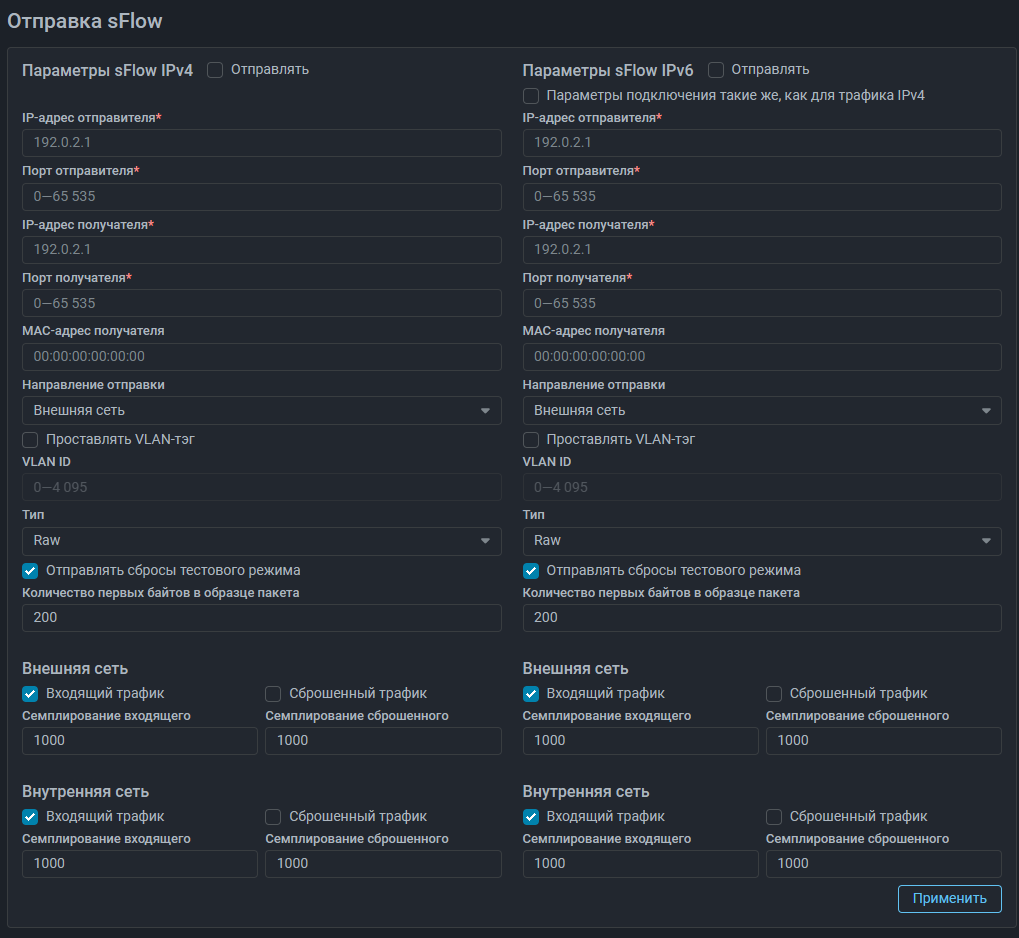 sFlow. Добавлена отправка sflow по сбросам в тестовом режиме.